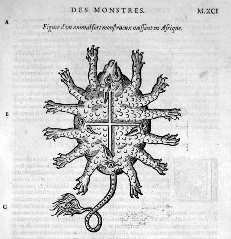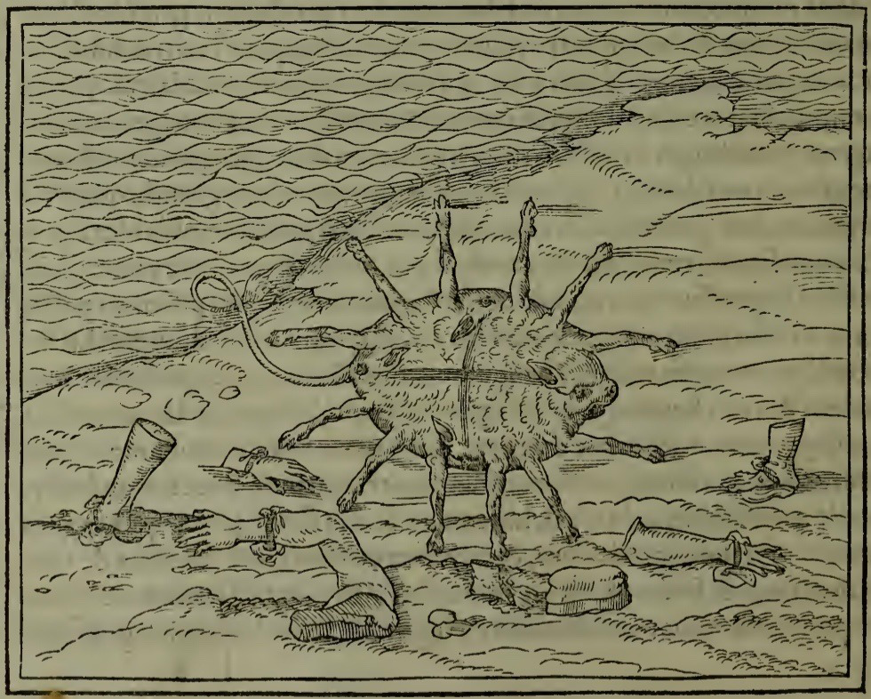 Here it is, the miraculous multi-legged animal described by Iambulus, appended to a French version of Leo Africanus, and copied probably by Thevet and unquestionably by Paré.