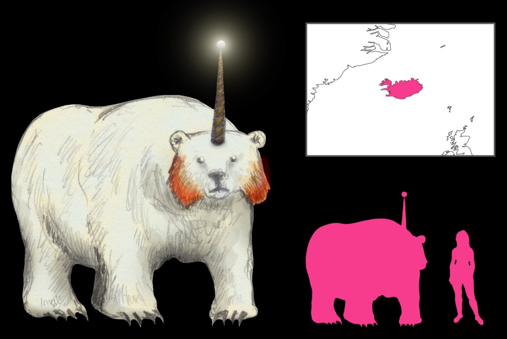 The Bjarndýrakóngur, the “King of the Bears”, is the undisputed monarch of the polar bears of Iceland. It is born from a female polar bear and a walrus or a bull.
