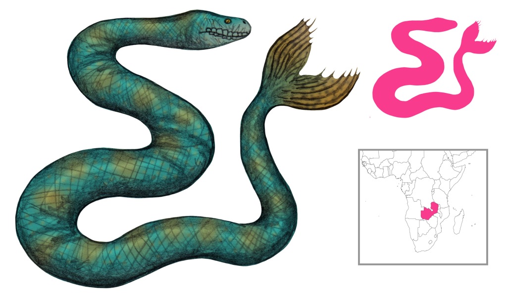 When a funkwe wants fish to be abundant, it starts swimming downstream, followed by schools of fish. Eventually its head reaches the great Kafue river while its tail is still at the source of the Kafulafuta – a span of eighty miles. It returns from the big river and brings the big fish with it.